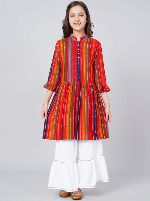 Trendy Girls Handkerchief Hem Top and Pant Set – Comfortable Ethnic Casual Wear