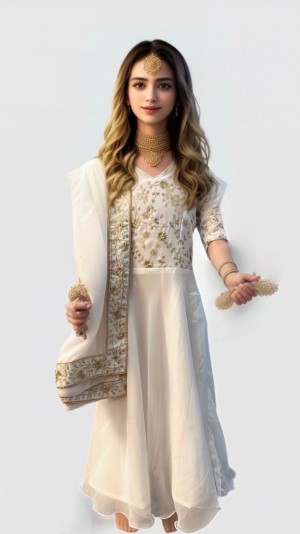 Enchanting White Anarkali Gown with Embroidery for Girls