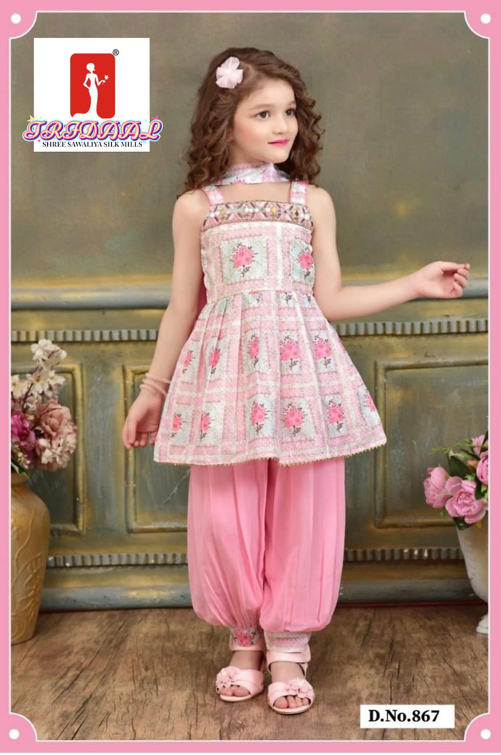 Kids Floral Printed Patiala Suit with Dupatta – Multiple Color Options